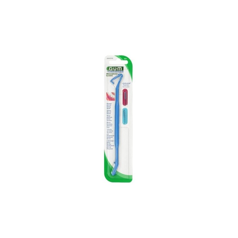 G•U•M PROXABRUSH CLASSIC Manico tradizionale e sistema di scovolini per tutti i tipi di spazi interdentali. Formato Manico in plastica con uno spazzolino per lato (misura 1,4 mm e 1,6 mm). Cod. 605M
