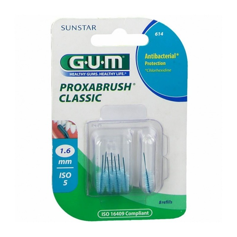 G•U•M PROXABRUSH CLASSIC Scovolini per la pulizia interdentale da 1,6 mm. Formato 8 scovolini per confezione. Cod. 614