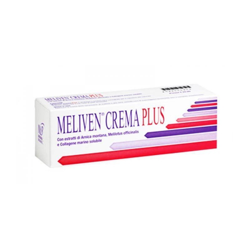 MELIVEN CREMA PLUS Crema con estratti di Arnica montana, Melilotus officinalis e Collagene marino solubile. Modalità d'uso Applicare la crema dove necessario, al mattino e alla sera, avendo cura di massaggiare lievemente sino a completo assorbimento. Avvertenze Tenere fuori dalla portata dei bambini. Prodotto dermocosmetico per uso esterno. Formato Tubetto da 100 ml.