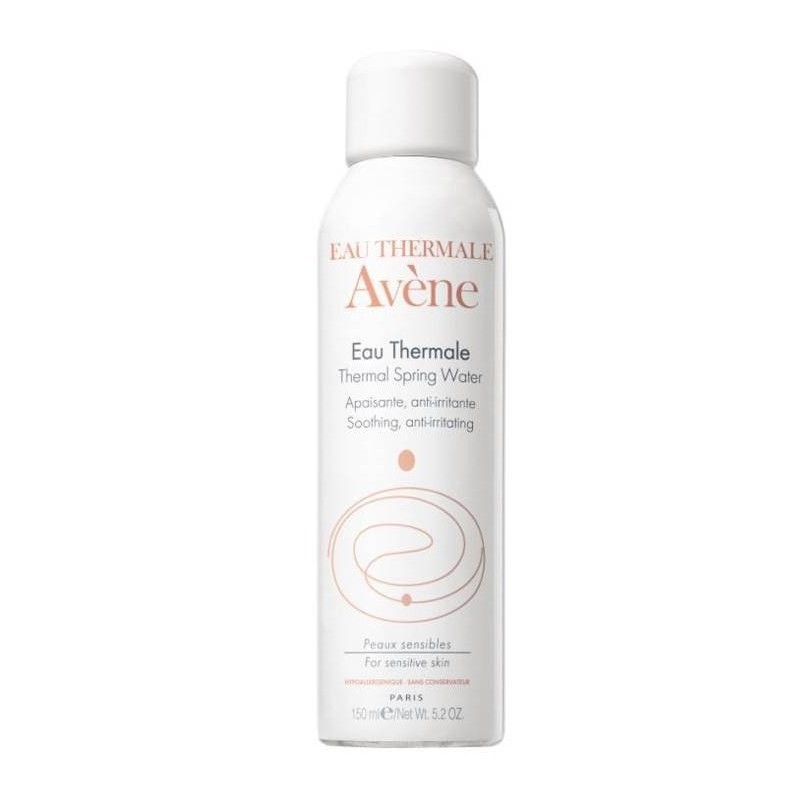 EAU THERMALE   Avène  Eau Thermale Prelevata direttamente alla fonte, l'acqua termale Avène conserva intatte tutte le sue proprietà lenitive e addolcenti. Confezionata in blocco sterile alla sorgente. Senza conservanti. Caratteristiche - Vaporizzazione lenitiva: l'Acqua termale Avène restituisce tutte le proprietà lenitive ed addolcenti (dopo la depilazione o la rasatura, arrossamenti del viso e dei glutei dei neonati, pelle fragilizzata, post-acta, pelle arrossata dal sole, dopo un arrossamento intenso). - Vaporizzazione di benessere e freschezza (dopo l'attività sportiva, in viaggio, in estate, per fissare il trucco). Lo Spray Eau Thermale Avène ha una vaporizzazione sottile e delicata. Indicata per le pelli sensibili, ipersensibili e allergiche. Sia per vaporizzazioni lenitive che per una pura sensazione di benessere e freschezza. Modalità d'utilizzoVaporizzare uno strato sottile di spray Eau Thermale Avène ogni volta che se ne sente la necessità. Componenti Avène thermal spring water (Avène aqua), Nitrogen. Formato Flacone spray da 150 ml Cod. IT000045