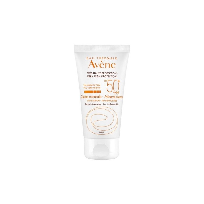 EAU THERMALE   Avène Crème minérale - Mineral cream 50+ Protezione molto alta della pelle intollerante o fragile del viso. Per carnagioni chiare, pelli spesso soggette ad eritemi, pelli intolleranti ai filtri chimici e ai profumi e pelli fragili di adulti e bambini. Efficace contro UVB-UVA lunghi e corti. Contiene un complesso fotoprotettore che associa: diossido di titanio, fotoprotettore 100% minerale; pre-tocoferil, precursore fotostabile della vitamina E, che apporta una protezione cellulare complementare; acqua termale Avène, dalle naturali proprietà lenitive ed addolcenti. Ha una consistenza leggermente colorata, ricca e cremosa. Ad elevata tollerabilità. Senza filtri chimici. Senza parabeni. Senza profumo. Certificazione UVA conforme. Molto resistente all’acqua. Fotostabile. Modalità d'uso Prima di ogni esposizione al sole, applicare uniformemente sulla pelle. Ripetere frequentemente l'applicazione in caso di esposizioni prolungate e dopo ogni bagno. L'uso di questo prodotto non deve spingere a esporsi al sole per lungo tempo. Evitare di esporsi tra le 12 e le 16. Componenti Avene thermal spring water (avene aqua); titanium dioxide [nano]; isodecyl neopentanoate; triethylhexanoin; c12-15 alkyl benzoate; glycerin; cyclopentasiloxane; polyglyceryl-4 isostearate; cetyl peg/ppg-10/1 dimethicone; hexyl laurate; alumina; c30-45 alkyl methicone; water (aqua); c30-45 olefin; cyclohexasiloxane; stearic acid; caprylic/capric triglyceride; caprylyl glycol; disodium edta; iron oxides (ci 77492) (ci 77491); octyldodecanol; pentaerythrityl tetra-di-t-butyl hydroxyhydrocinnamate; silica dimethyl silylate; sodium chloride; sodium myristoyl glutamate; sorbic acid; talc; titanium dioxide (ci 77891); tocopheryl glucoside; triethoxycaprylylsilane; xanthan gum. Formato Tubo da 50 ml. Cod. IT000517