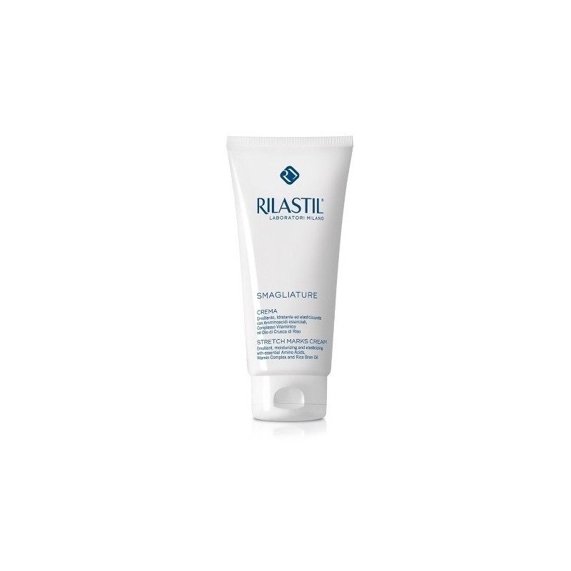 RILASTIL SMAGLIATURE CREMA Descrizione Trattamento specifico contro le smagliature che, attraverso la sua texture ricca e cremosa, si presta ad un benefico e prolungato massaggio.Previene e contrasta le smagliature. Caratteristiche Attenua le smagliature esistenti su addome, fianchi, glutei, cosce, seno e braccia, aiutando a ristrutturare la matricedermica (Amminoacidi essenziali). Previene e contrasta la formazione di nuove smagliature, grazie ad una spiccata azione antiossidante ed eutrofica (Complesso Vitaminico). Nutre in profondità la pelle, rendendola più elastica e morbida (Olio di Crusca di Riso). Indicazioni Adatta a tutti i tipi di pelle, per prevenire e contrastarele smagliature di colore bianco o rosso/violaceo. Iniziare il trattamento appena compaiono i primi segni. Plus Dermatologicamente testata. Clinicamente testata. Microbiologicamente testata. Testata per Nichel, Cobalto, Cromo, Palladio e Mercurio*. Non comedogenica. Senza Parabeni. Ipoallergenica**. pH fisiologico. Clinicamente testata su donne in gravidanza. Utilizzabile in gravidanza. *Ognuno inferiore a una parte per milione. Piccole quantità possono essere responsabili di sensibilizzazione cutanea. **di cui all'allegato III Regolamento CE1223/2009. Modalità d'uso Applicare mattina e sera una dose adeguata di prodotto, massaggiando trasversalmente la smagliatura fino a completo assorbimento. Per ottenere risultati più rapidi, soprattutto in presenza dismagliature di colore rosso/violaceo (striae rubrae), si consiglia di abbinare Rilastil Smagliature Fiale alla crema. In gravidanza si consigliano 2 applicazioni al giorno su seno, addome, cosce, interno cosce, fianchi, glutei e cerniera lombosacrale, a partiredal terzo mese, fino a 3 mesi dopo il parto. Componenti Aqua (Water), PEG-8 Beeswax, PEG-8, Olus (Vegetable) Oil, PEG-6 Stearate, Ethylhexyl Palmitate, Oryza sativa (Rice) Bran Oil, C12-15 Alkyl Benzoate, Dimethicone, Sodium PCA, Panthenol, Triisostearin PEG-6 Esters, PEG-32 Stearate, Glycol Stearate, Arginine, Glyceryl Stearate, PEG-100 Stearate, Leucine, Isoleucine, Valine, Tocopheryl Acetate, Hydrolyzed Glycosaminoglycans, Carbomer, Niacinamide, Allantoin, Oryzanol, Ethyl Linolenate, Ethyl Oleate, Ethyl Linoleate, Hydrolyzed Vegetable Protein, Hydrogenated Lecithin, Pentaerythrityl Tetra-di-t-Butyl Hydroxyhydrocinnamate, Phenoxyethanol, Ethylhexylglycerin, Disodium EDTA, Parfum (Fragrance).La lista di ingredienti può subire dei cambiamenti, invitiamo il consumatore a far riferimento alla confezione del prodotto per la lista ingredienti più aggiornata. Formato Tubo da 200 ml Cod. 106