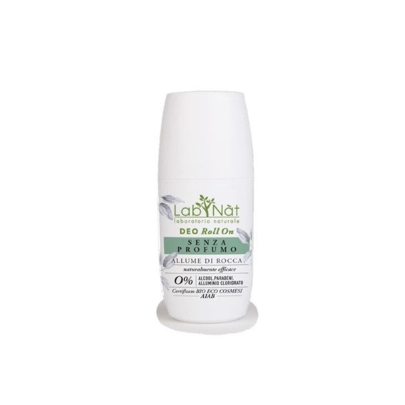 Tutti i deodoranti Labnatù utilizzano come principio attivo Allume di Rocca, sale di origine naturale. Nessuno dei prodotti della linea Labnatù è addizionata di alcool e tutti garantiscono un’efficacia antiodorante 24/24 h. I comuni deodoranti, che contengono Alluminio Cloridrato chiudono i pori della pelle evitando così che il sudore possa essere espulso e quindi che se ne possa percepire il cattivo odore. Con questo sistema le tossine che dovrebbero essere eliminate rimangono imprigionate sottocute creando, col tempo, irritazioni e dolorosi fastidi. I roll-on hanno una formula arricchita con un polimero vegetale che ne aumenta la viscosità e consente al prodotto di stendere una pellicola traspirante sulla pelle.
