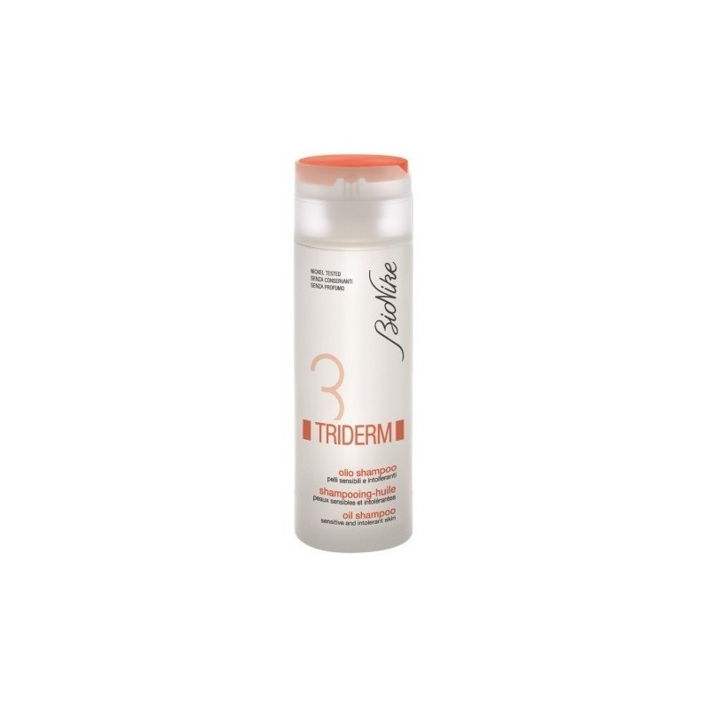 NICKEL TESTED SENZA CONSERVANTI SENZA PROFUMO BioNike TRIDERM olio shampoo pelli sensibili e intolleranti Prodotto dal potere schiumogeno controllato, deterge efficacemente, ma con delicatezza. Per le sue proprietà lenitive ed emollienti, è ideale in caso di irritazione e prurito del cuoio capelluto e per trattare localmente la crosta lattea in neonati e bambini. Indicato per shampoo frequenti, deterge rinforzando anche i capelli fragili e sfibrati, lasciandoli morbidi e setosi. Contiene profumo esente da allergeni. Consigliato per le situazioni irritative del cuoio capelluto (dermatite seborroica). Per capelli delicati e sfibrati e per chi necessita di lavaggi frequenti o quotidiani. Indicato anche per la seborrea dei neonati e bambini. Modalità d'utilizzo Per la detersione quotidiana: distribuire il prodotto sui capelli inumiditi, massaggiare e sciacquare. Per la seborrea (neonati e bambini): con un batuffolo di cotone, frizionare localmente e sciacquare. Componenti Aqua (water), laureth-4, PEG-200, paraffinum liquidum (mineral oil), laureth-7, disodium laureth sulfosuccinate, sodium lauroyl sarcosinate, glycerin, hydrogenated polyisobutene, polyquaternium-7, parfum (fragrance). Lauril Solfo Succinato: emulsionante con funzione lipodisperdente. Ha una buona attività detergente pur dando origine ad una modesta quantità di schiuma. Polyquaternium 7: sostanza dotata di azione filmogena. Si lega alle proteine del capello formando un film protettivo superficiale. Polialcoli, Polietilenglicole, Glicerolo: ad elevata tollerabilità cutanea, hanno attività emolliente ed idratante. Olio di vaselina + squalano: sostanze lipofile che detergono per affinità; non producono irritazione e lubrificano la superficie cutanea. Proteggono la cute dall'azione aggressiva dei tensioattivi. Formato 200 ml Cod. 21131