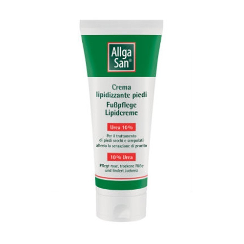 Allga San Descrizione Crema lipidizzante piedi. Per il trattamento cosmetico di piedi secchi e screpolati. Allevia la sensazione di fastidio. Indicata anche per soggetti particolarmente delicati e sensibili. La formulazione con la combinazione di urea al 10% e lipidi protegge la pelle dei piedi secchi e screpolati dalla disidratazione e ne supporta la rigenerazione. Dermatologicamente tesata. Modalità d'uso Applicare AllgaSan crema lipidizzante piedi con urea 10% mattina e sera sulla pelle asciutta e precedentemente detersa dei piedi stendendone uno strato sottile e massaggiando fino a completo assorbimento, ripetere l’applicazione al bisogno. Componenti Aqua, urea, glycerin, cetearyl alcohol, caprylic/capric triglyceride, paraffinum liquidum, decyl oleate, glyceryl stearate, sodium lactate, petrolatum, panthenol, propylene glycol, lactic acid, sodium cetearyl sulfate, acrylates/C10-30 alkyl acrylate crosspolymer, potassium sorbate. Avvertenze Cosmetico per uso esterno. Conservazione Non conservare a temperature superiori ai 25 °C. Validità post-apertura: 12 mesi. Formato Tubo da 100 ml. Cod. 507037
