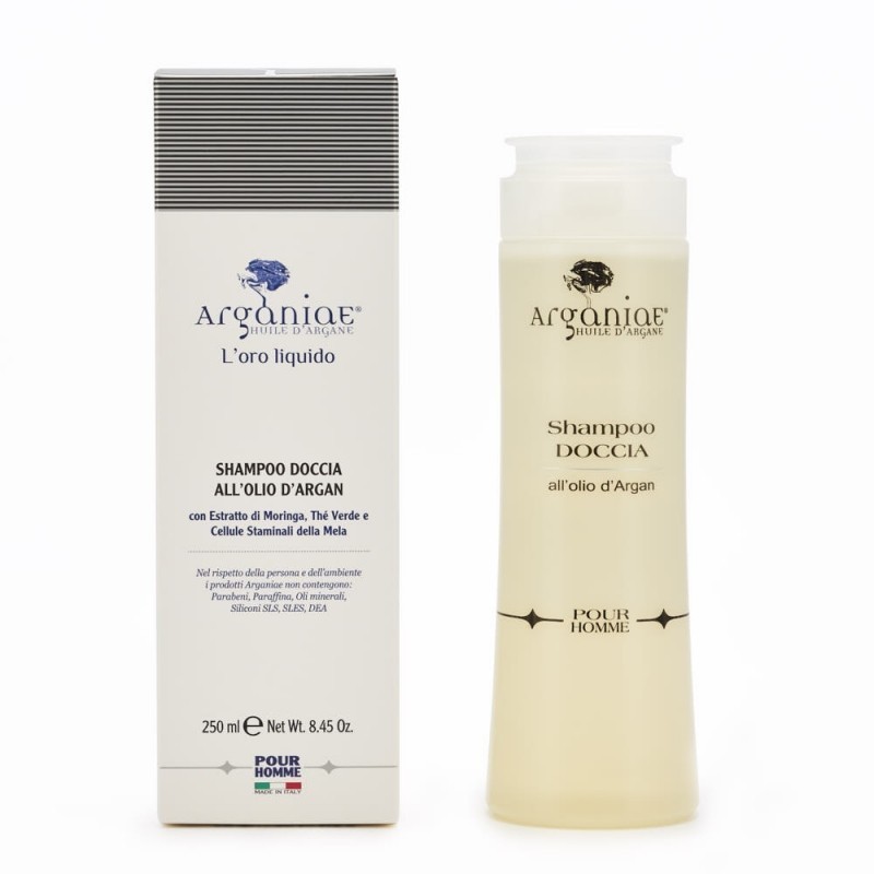 Shampoo doccia POUR HOMME Descrizione Shampoo doccia uomo formulato per nutrire pelle e capelli e per dare loro un aspetto sano. I principi attivi presenti nella composizione svolgono un'azione idratante, nutriente e protettiva. L'estratto dell'argania spinosa, il the verde e le cellule staminali della mela svizzera rendono morbida la pelle e i capelli docili al pettine, l'estratto di moringa li protegge dagli stress ambientali. Soluzione antistress e tonificante, perfetto dopo l'attività sportiva o dopo una giornata di lavoro. Dalla profumazione intensa e dalla consistenza cremosa. Modalità d'uso Distribuire lo shampoo doccia su corpo e capelli umidi, massaggiando accuratamente. Lasciare in posa qualche minuto affinché i principi attivi in esso contenuti abbiano un più efficace contatto con la cute e i capelli. Sciacquare accuratamente. Ingredienti Aqua, C12-15 alkyl benzoate, octocrylene, diethylamino hydroxybenzoyl hexyl benzoate, bis-ethylhexyloxyphenol methoxyphenyl triazine, titanium dioxide, PEG-30 dipolyhydroxystearate, hydrogenated castor oil, argania spinosa kernel oil, PPG-15 stearyl ether, propylene glycol, cera alba, parfum, panthenol, calendula officinalis extract, chamomilla recutita flower extract, magnesium sulfate, ethylhexyl methoxycinnamate, hydrated silica, dimethicone/methicone copolymer, aluminum hydroxide, ethylhexylglycerin, methylisothiazolinone, phenoxyethanol. Avvertenze Per uso esterno, non ingerire. Evitare il contatto con occhi e mucose. Formato Flacone da 250 ml.