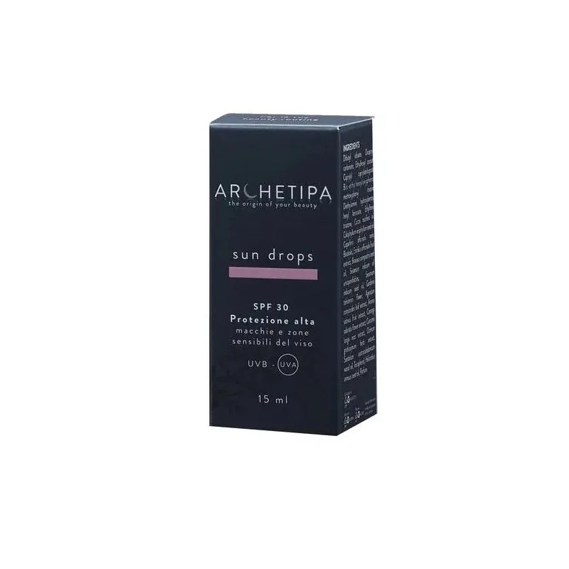 ARCHETIPA sun drops Descrizione Protezione solare alta per proteggere e uniformare la pelle. Grazie ai filtri solari ad ampio spettro, protegge la pelle dai danni ossidativi e dai processo di foto aging indotti dall'esposizione ai raggi solari. La formula è arricchita con preziosi oli tropicali di cocco, tamanu e copaiba che idratano e proteggono la pelle in associazione ad estratti esotici di tiaré, ylang-ylang e amla dall'azione emolliente. Modalità d'uso In caso di macchie o zone sensibili all'esposizione solare, applicare ARCHETIPA sun drops puro sull'area da proteggere. è possibile emulsionare 2 gocce di ARCHETIPA sun drops direttamente con ARCHETIPA dayTime cream stendendo poi uniformemente sul viso. Componenti Dibutyl adipate, dicaprylyl carbonate, ethylhexyl cocoate, caprylyl caprylate/caprate, bis-ethylhexyloxyphenol methoxyphenyl triazine, diethylamino hidroxybenzoyl hexyl benzoate, ethylhexyl triazone, Cocos nucifera oil, Calophyllum inophyllum seed oil, Copaifera officinalis resin, bisabolol, Emblica officinalis fruit extract, Brassica campestris seed oil, Sesamum indicum oil unsaponifiables, Sesamum indicum seed oil, Gardenia tahitensis flower, Ageratum conyzoides leaf extract, Ananas sativus fruit extract, Cananga odorata flower extract, Curcuma longa root extract, Ocimum gratissimum herb extract, Santalum austrocaledonicum wood oil, tocopherol, Helianthus annuus seed oil, parfum. Avvertenze Si consiglia di esporsi al sole responsabilmente, evitando di rimanerci troppo a lungo. Applicare il prodotto per la protezione solare prima dell'esposizione e riapplicare, soprattutto dopo aver traspirato o dopo essersi bagnati o asciugati, al fine di mantenere la protezione originaria. Conservazione Validità post-apertura: 12 mesi. Formato 15 ml. Cod. AR01.0110