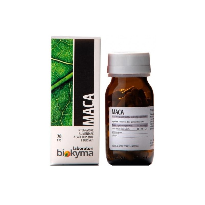 MACA Descrizione Integratore alimentare a base di piante e derivati. I principi attivi del maca possono agire favorendo la sensazione di benessere in caso di stress psico-fisico. Ingredienti Maca (Lepidium meyenii L.) radice estratto secco 68%, gelatina alimentare, silice, cellulosa. Senza glutine e lattosio. Caratteristiche nutrizionali Valori mediper 2 capsuleMaca e.s. 560 mg Modalità d'uso Si consiglia l'assunzione di 2 capsule al giorno. Avvertenze Tenere fuori dalla portata dei bambini al di sotto dei 3 anni di età. Gli integratori alimentari non vanno intesi come sostituto di una dieta variata. Non eccedere la dose giornaliera raccomandata. Non utilizzare decorso il termine ultimo di conservazione. La data di scadenza si riferisce al prodotto in confezione integra e correttamente conservato. Formato 70 capsule da 320 mg. Cod. CP370O