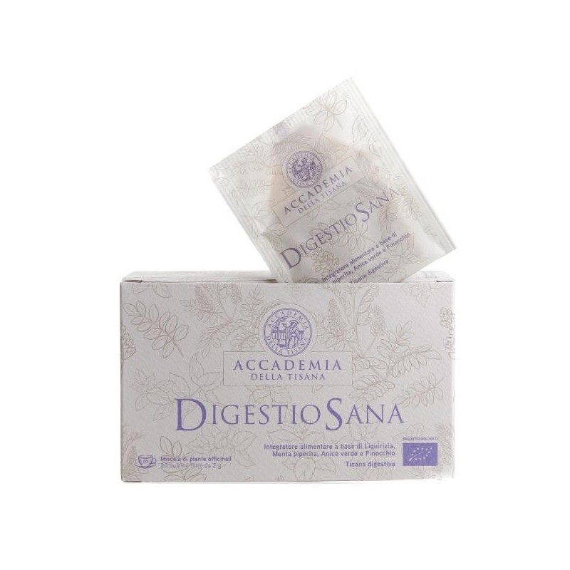 DIGESTIOSANA Descrizione Integratore alimentare a base di liquirizia, menta piperita, anice verde e finocchio. Azione digestiva, eupeptica, procinetica a livello dell’apparato gastro-intestinale, efficace contro gonfiori post- prandiali, digestione lenta e atonie gastriche Ingredienti Liquirizia, menta piperita, anice verde, finocchio. Modalità d'uso Mettere un filtro in 100 ml di acqua calda. Lasciare in infusione per 5-10 minuti, dolcificare a piacere con miele, bere la sera prima di coricarsi. Formato 20 filtri. Peso netto: 40 g. Cod. IBAFDIGESTIOS