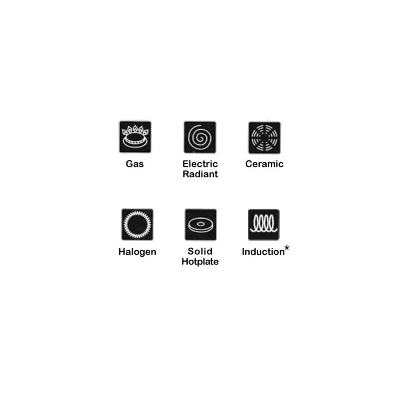 - Sebbene i manici siano rivestiti con una guaina termoprotettiva, è importante scegliere una fonte di calore adatta alle dimensioni del fondo della pentola in modo che la fiamma non ne surriscaldi i fianchi e i manici.
