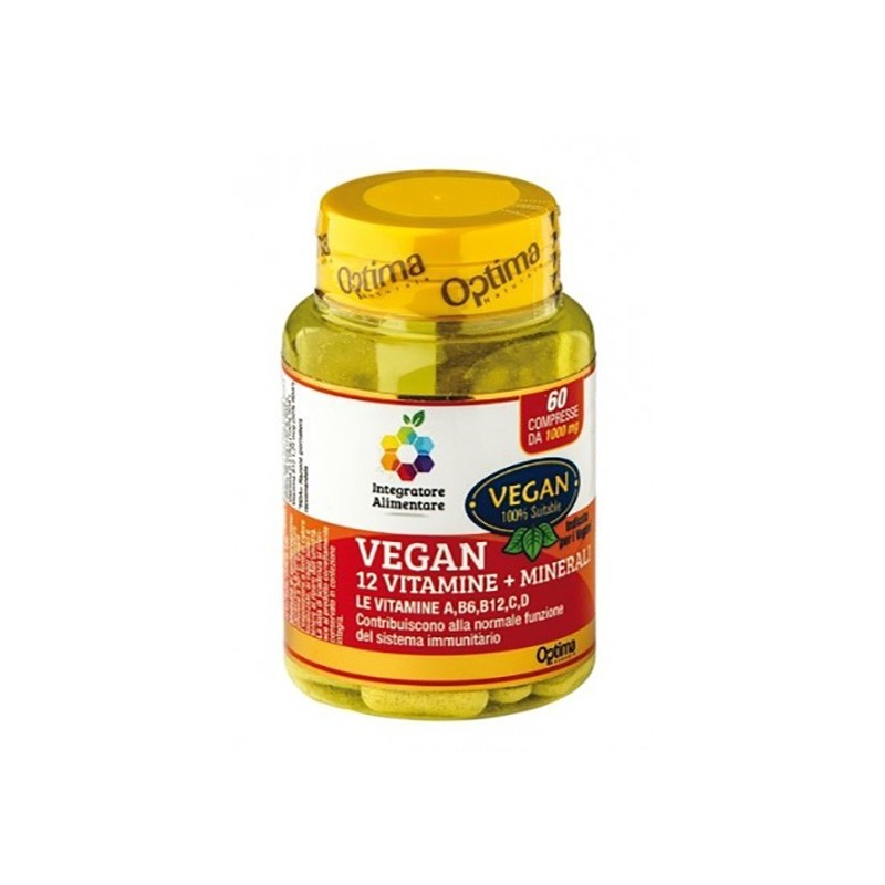 Colours of Life VEGAN 12 VITAMINE + 3 MINERALI Descrizione Integratore alimentare in compresse a base di vitamine e minerali, indicato per vegani e vegetariani. Le vitamine A, B6, B9, B12, C, D e zinco contribuiscono alla normale funzione del sistema immunitario. Le vitamine B1, B2, B3, B5, B8, ferro e calcio contribuiscono al normale metabolismo energetico. Ingredienti Maltodestrina, carbonato di calcio, agente di carica: cellulosa; gluconato ferroso, vitamina C (acido L-ascorbico), gluconato di zinco, vitamina E (acetato di DL-alfa-tocoferile), agenti antiagglomeranti: biossido di silicio e sali di magnesio degli acidi grassi; vitamina B3 (nicotinamide), vitamina A (acetato di retinile), vitamina B6 (cloridrato di piridossina), vitamina B5 (calcio-D-pantotenato), vitamina B1 (cloridrato di tiamina), vitamina B2 (riboflavina), vitamina D (colecalciferolo), vitamina B12 (cianocobalamina), acido folico (acido pteroil-monoglutammico), D- biotina. Senza glutine. Senza lattosio. Caratteristiche nutrizionali Valori medi attivi funzionaliper dose massima giornaliera (2 compresse)%VNR* Calcio carbonato di cui calcio500 mg 25 mg- 25% Gluconato ferroso di cui ferro114 mg 14 mg- 100% Zinco gluconato di cui zinco94,4 mg 12,5 mg- 125% Vitamina C90 mg100% Vitamina E20 mg166,6% Vitamina B318 mg112,5% Vitamina B63 mg214% Vitamina B53 mg50% Vitamina B22,8 mg200% Vitamina B12,5 mg227% Vitamina A800 mcg100% Acido folico300 mcg150% Biotina66 mcg132% Vitamina D5 mcg100% Vitamina B121,24 mcg50% *VNR: Valori Nutritivi di Riferimento. Modalità d'uso Assumere una compressa (per adolescenti e bambini di età superiore ai tre anni) o due compresse (adulti) al giorno prima dei pasti con un po' d'acqua o altra bevanda. Avvertenze Non eccedere la dose giornaliera consigliata. Tenere fuori dalla portata dei bambini di età inferiore ai 3 anni. Gli integratori alimentari non vanno intesi come sostituti di una dieta variata e di uno stile di vita sano. Conservazione Conservare a temperatura inferiore a 30°C, evitare l'esposizione a fonti di calore localizzate, ai raggi solari e tenere al riparo dall'umidità. Il termine minimo di consumo si riferisce al prodotto correttamente conservato in confezione integra. Formato Flacone da 60 compresse da 1000 mg cad. Cod. NVI11001