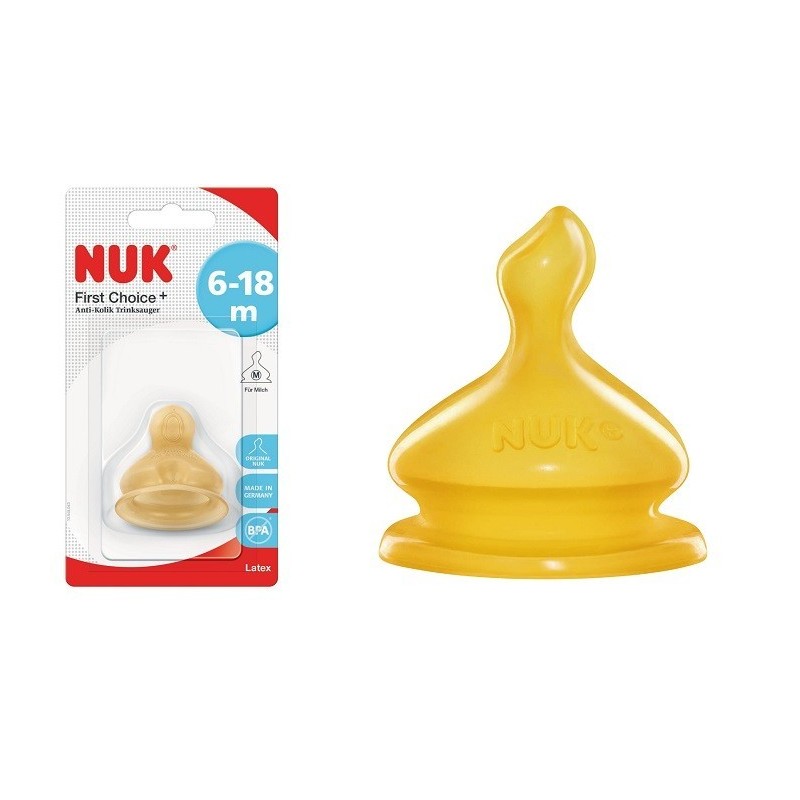 NUK TETTARELLA FIRST CHOICE+ Lattice Descrizione Tettarella First Choice+ in lattice, sagomata sulla forma del capezzolo materno per garantire un'esperienza di allattamento più naturale possibile. Ultra morbida per adattarsi alla bocca del bambino. Dotata dell'innovativa valcola Anti-Colic per evitare l'ingerimento involontario di aria da parte del bambino durante l'allattamento. Formato 6-18 mesi Misura M (foro medio = per il latte in polvere) Cod. 10713238