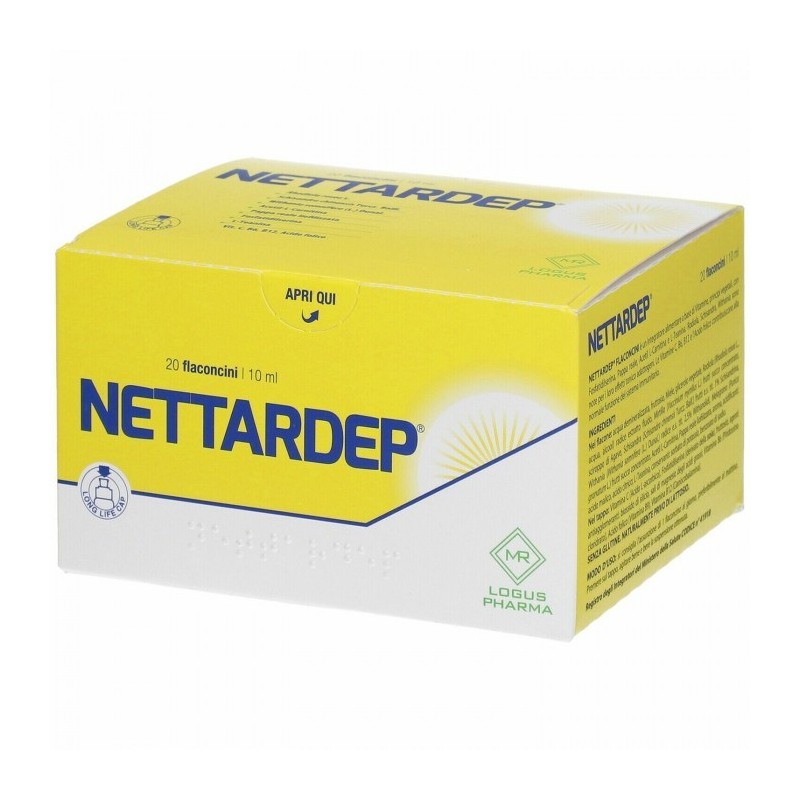 NETTARDEP Descrizione Integratore alimentare a base di vitamine, principi vegetali, con fosfatidilserina, pappa reale, acetil L-carnitina e L-teanina. Rodiola, schisandra, withania sono note per i loro effetti tonico adattogeni. Le vitamine C, B6, B12 e l'acido folico contribuiscono alla riduzione della stanchezza e dell'affaticamento. Ingredienti Nel flacone: acqua demineralizzata, fruttosio, miele, glicerolo vegetale, rodiola (Rhodiola rosea L., acqua, alcool) radice estratto fluido, mirtillo (Vaccinium myrtillus L.) frutti succo concentrato, sciroppo di agave, schisandra (Schisandra chinensis Baill.) frutti estratto secco titolato 1% schisandrina, withania [Withania somnifera (L.) Dunal.] radice estratto secco titolato 2,5% withanolidi, melograno (Punica granatum L.) frutti succo concentrato, acetil L-carnitina, pappa reale liofilizzata, aroma; acidificanti: acido malico, acido citrico; L-teanina; conservanti: sorbato di potassio, benzoato di sodio. Nel tappo: vitamina C (acido ascorbico, etilcellulosa), fosfatidilserina (derivato della soia), fruttosio; agenti antiagglomeranti: biossido di silicio, sali di magnesio degli acidi grassi; vitamina B6 (piridossina cloridrato), acido folico (vitamina B9), vitamina B12 (cianocobalamina). Senza glutine. Naturalmente privo di lattosio. Caratteristiche nutrizionali Valori mediDose giornaliera(1 flaconcino) Miele2,00 g Rodiola estratto fluido160 mg Mirtillo succo110 mg Schisandra estratto seccodi cui schisandrina80,0 mg0,80 mg Withania estratto seccodi cui withanolidi80,0 mg2,00 mg Acetil L-carnitina80,0 mg Pappa reale liofilizzata80,0 mg Melograno succo80,0 mg Vitamina C60,0 mg(75% VNR*) Fosfatidilserina50 mg L-teanina20 mg Vitamina B62,00 mg(142% VNR*) Acido folico200 mcg(100% VNR*) Vitamina B121,00 mcg (40% VNR*) *VNR: Valori Nutritivi di Riferimento Modalità d'uso Si consiglia l’assunzione di 1 flaconcino al giorno, preferibilmente al mattino. Premere sul tappo, agitare bene e bere la sospensione ottenuta. Avvertenze Tenere fuori dalla portata dei bambini al di sotto dei 3 anni. Non superare le dosi consigliate. Gli integratori non vanno intesi come sostituti di una dieta variata, equilibrata e di un sano stile di vita. Il prodotto contiene derivati della soia. Conservazione Conservare in luogo fresco ed asciutto, a temperature non superiori a 25 °C. Validità a confezionamento integro: 36 mesi Formato 20 flaconcini da 10 ml