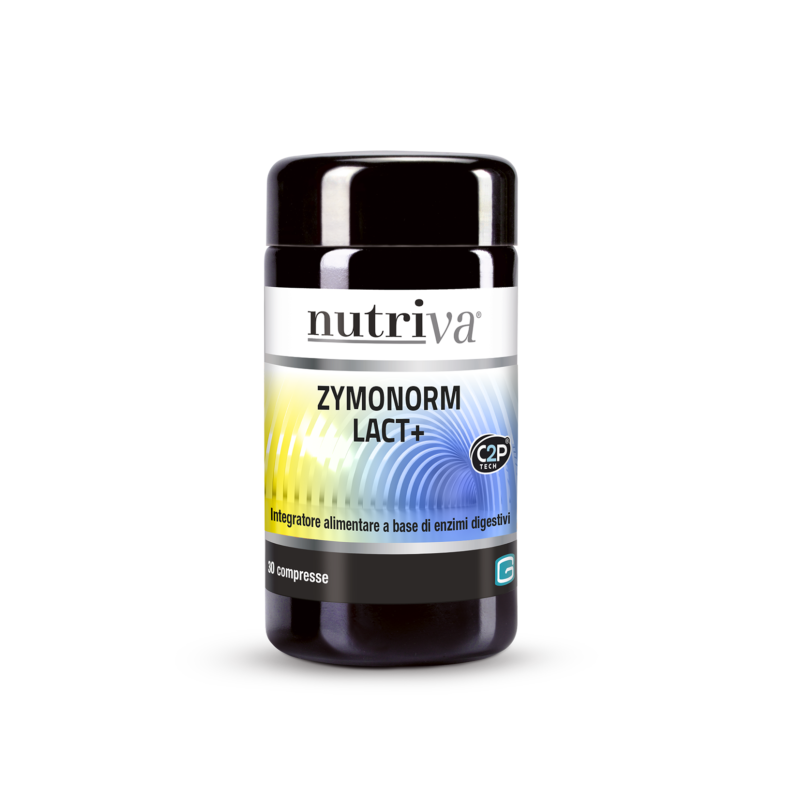 nutriva ZYMONORM ENZIMI Descrizione Integratore alimentare a base di enzimi digestivi con lattasi, che migliora la digestione del lattosio nei soggetti che lo mal digeriscono. Adatto ai vegani. Ingredienti Miscela di enzimi digestivi da maltodestrine fermentate; agente di carica: cellulosa microcristallina; agenti antiagglomeranti: magnesio stearato, silice micronizzata. Caratteristiche nutrizionali Contenuti mediper dose giornaliera(1 compressa) Miscela di enzimi digestivi contenenti - amilasi - proteasi - glucoamilasi - lipasi - cellulasi - lattasi - pectinasi100 mg 30.000 DU 60.000 HUT 4 AGU 150 FC CLU 600 CU 1.000 ALU 14 endo-PG Modalità d'uso 1 compressa durante o dopo i pasti principali. Avvertenze Non superare la dose giornaliera consigliata. Tenere fuori dalla portata dei bambini al di sotto dei 3 anni di età. Gli integratori alimentari non vanno intesi come sostituti di una dieta variata ed equilibrata e di uno stile di vita sano. Conservazione Conservare a temperatura non superiore a 30 °C, lontano da luce e/o fonti di calore. Il termine minimo di conservazione si riferisce al prodotto correttamente conservato, in confezione integra. Validità a confezionamento integro: 36 mesi. Formato Confezione da 60 compresse da 300 mg. Peso netto 18 g Cod. 17523