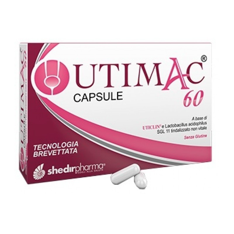 Utimac 60 Descrizione Complemento alimentare a base di Uticlin e Lactobacillus acidophilus SGL 11 tindalizzato non vitale, indicato nei casi di ridotto apporto con la dieta o di aumentato fabbisogno di tali elementi. Grazie al Cranberry e all’Uva Ursina, contribuisce alla funzionalità delle vie urinarie. Ingredienti Uticlin e Lactobacillus acidophilus SGL 11 tindalizzato non vitale. Modalità d'uso Si consiglia di assumere 1 capsula al giorno da deglutire con acqua, preferibilmente la sera prima di coricarsi, a vescica vuota, lontano dai pasti. Avvertenze Non superare la dose giornaliera consigliata. Tenere fuori dalla portata dei bambini al di sotto dei 3 anni. I complementi alimentari non vanno intesi come sostituti di una dieta variata ed equilibrata e di uno stile di vita sano. Per l’uso del prodotto nelle donne in gravidanza ed allattamento e nei bambini si consiglia di sentire il parere del medico. Non assumere in caso di ipersensibilità sospetta o accertata ad uno o più ingredienti presenti nel prodotto. Nei soggetti in trattamento con farmaci anticoagulanti, prima dell’eventuale uso del prodotto, consultare il medico. Per l’origine naturale di alcuni ingredienti è possibile avere delle variazioni di colore da lotto a lotto. Conservazione Validità a confezionamento integro: 30 mesi. Formato Blister da 14 capsule.