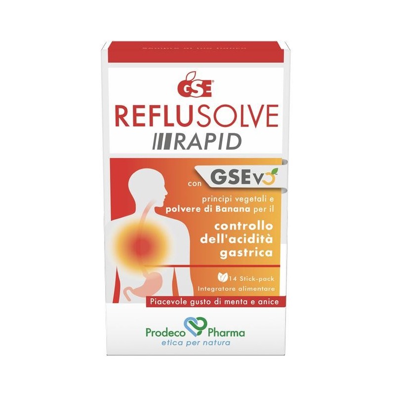 GSEREFLUSOLVERAPID Descrizione Integratore alimentare a base di estratto di semi di Pompelmo (GSEvo), opuntia, altea, lichene, banana, timo, anice e ulivo. I componenti di GSEvo svolgono un’azione antiossidante e contribuiscono all’equilibrio microbico dell’organismo. GSE REFLUSOLVE RAPID è arricchito di estratti vegetali con azione emolliente e lenitiva sul sistema digerente (opuntia e altea) e sulla mucosa orofaringea (lichene). La polvere di banana favorisce il controllo dell’acidità gastrica. L’estratto di timo e l'olio essenziale di anice supportano la funzione digestiva e promuovono il benessere della gola mentre l’estratto di ulivo possiede un’azione antiossidante. Ingredienti Acqua; stabilizzanti: glicerolo; sorbitolo; Gsevo: pompelmo (Citrus paradisi macfad.) semi e.s. ed estratto liofilizzato; complesso di opuntia [Opuntia ficus-indica (L.) Mill.] cladodi e ulivo (Olea europaea L.) foglie e.s., tit. 23% in polisaccaridi e 4% in polifenoli totali, lichene [Cetraria islandica (L.) Ach.] tallo e.s. tit. 30% in polisaccaridi; banana [Musa paradisiaca L. (pro sp.)] frutto polvere, altea (Althaea officinalis L.) radice e.s. tit. 30% in polisaccaridi, timo (Thymus vulgaris L.) foglie e.s. tit. 0,3% in timolo; addensanti: gomma di tara, pectina; aroma naturale; conservanti: sodio benzoato, potassio sorbato; anice (Illicium verum Hook. F.) semi olio essenziale; acidificante: acido citrico; edulcorante: glicosidi dello steviolo. Senza glutine. Caratteristiche nutrizionali Valori medi dose massima giornaliera(2 stick-pack) GSEvo:di cui pompelmo semi e.s.di cui pompelmo semi estratto liofilizzato 600,00 mg480,00 mg120,00 mg Complesso di Opuntia cladodi e.s. e ulivo foglie e.s.di cui polisaccarididi cui polifenoli 400,00 mg92,00 mg16,00 mg Lichene tallo e.s.di cui polisaccaridi 300,00 mg90,00 mg Banana frutto polvere 200,00 mg Altea radice e.s.di cui polisaccaridi 150,00 mg45,00 mg Timo foglie e.s.di cui timolo 150,00 mg0,45 mg Anice semi o.e. 15,60 mg Assumere uno stick-pack dopo i pasti principali (a pranzo e a cena) o al bisogno (ad esempio prima di coricarsi). Avvertenze Non superare la dose giornaliera consigliata. Tenere fuori dalla portata dei bambini al di sotto dei tre anni. Gli integratori non vanno intesi quali sostituti di una dieta variata, equilibrata e di un sano stile di vita. Conservazione Conservare in luogo fresco ed asciutto, al riparo dalla luce e da fonti di calore. Formato Confezione da 14 stick-pack.