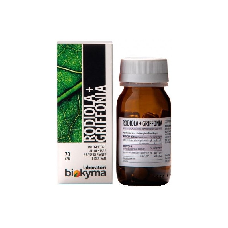 RODIOLA + GRIFFONIA Descrizione Integratore alimentare a base di piante e derivati. Ingredienti Rodiola (Rodiola rosea L.) radice estratto secco 45%, Griffonia (Griffonia simplicifolia) semi estratto secco 45%, cellulosa, silice, magnesio stearato. Caratteristiche nutrizionali Valori mediper 4 capsuleRodiola rosea 1.080 mgGriffonia 1.080 mg Modalità d'uso 2 compresse al mattino e 2 nel pomeriggio. Avvertenze Tenere fuori dalla portata dei bambini al di sotto dei 3 anni di età. Gli integratori alimentari non vanno intesi come sostituto di una dieta variata. Non eccedere la dose giornaliera raccomandata. Non utilizzare decorso il termine ultimo di conservazione. La data di scadenza si riferisce al prodotto in confezione integra e correttamente conservato. Formato 70 compresse da 600 mg. Cod. CP527T