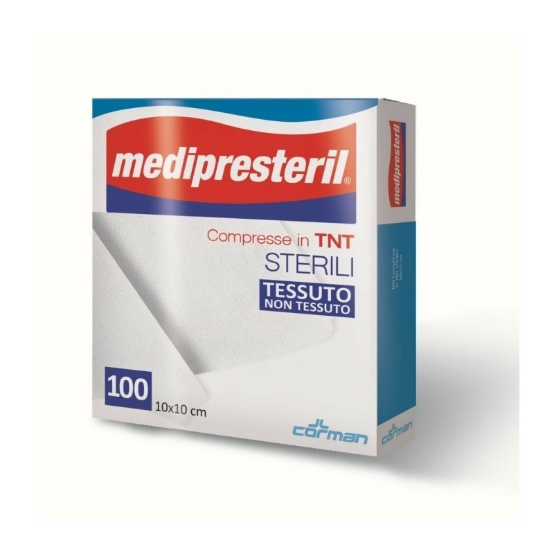 mediPresteril Dispositivo medico CE, monouso, di Classe I, fornito allo stato sterile. Sterilizzato a ossido di etilene. Compresse sterili in TNT consigliate per medicazioni sterili, per la compressione e per l’assorbimento degli essudati, consigliate anche per pulire le pelli più delicate. Raccomandate per la protezione delle piaghe e dei cordoni ombelicali. Modalità di utilizzo Pulire e disinfettare la parte lesa prima di applicare il tampone. Sostituire almeno una volta al giorno. Componenti - Tessuto non tessuto. - 70% viscosa. - 30% poliestere. Formato - 100 compresse cm 10 x 10. - 12 compresse cm 18 x 40. - 12 compresse cm 36 x 40. - Cod. P0237 / P0238 / P0239 Numero di registrazione marchio CE 0546