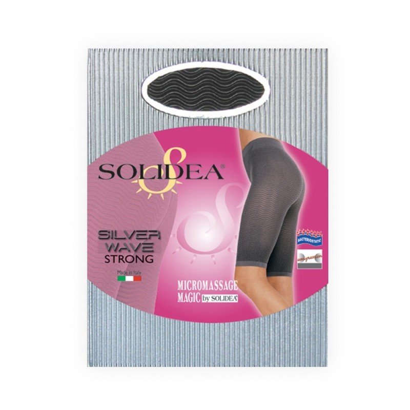 SOLIDEA Silver Wave StrongPantaloncini modello bermuda, morbidi ed eleganti caratterizzati da un tessuto brevettato dalla struttura ad onde tridimensionali che, con i naturali movimenti del corpo, agisce sulla cute con un profondo e delicato micromassaggio. La circolazione si riattiva e viene favorita l’eliminazione dei liquidi in eccesso. Inoltre, questo articolo è realizzato con un filato speciale che grazie all’azione batteriostatica degli ioni d’argento mantiene l’equilibrio biologico della flora batterica e permette la naturale traspirazione della pelle, ostacolando l’insorgenza di cattivi odori. Tassello igienico in cotone e cucitura piatta.Colore: nero. Componenti 80% poliammide, 18% elastan, 2% cotone. Formato Taglie disponibili: 1-S, 2-M, 3-ML, 4-L, 4XL-XL, 5X-XXL. Cod.57A5SOSM0901/57A5SOSM0902/57A5SOSM0903/ 57A5SOSM0904/57A5SOSM094X/57A5SOSM095X