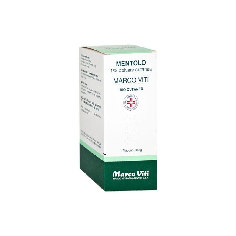 Il medicinale deve essere impiegato solo per uso esterno; non deve essere inalato e non deve essere applicato su occhi e mucose. Non deve essere applicato su ferite aperte né su guanti chirurgici. Mentolo Marco Viti deve essere usato con cautela nei bambini fino a 6 anni di età. Questo prodotto contiene derivati terpenici che, in dosi eccessive, possono provocare disturbi neurologici come convulsioni in neonati e bambini. Il trattamento non deve essere prolungato per più di 3 giorni per i rischi associati all’accumulo di derivati terpenici, quali ad esempio canfora, cineolo, niaouli, timo selvatico, terpineolo, terpina, citrale, mentolo e oli essenziali di aghi di pino, eucalipto e trementina (a causa delle loro proprietà lipofiliche non è nota la velocità di metabolismo e di smaltimento) nei tessuti e nel cervello, in particolare disturbi neuropsicologici. Non deve essere utilizzata una dose superiore a quella raccomandata per evitare un maggior rischio di reazioni avverse al medicinale e i disturbi associati al dosaggio (vedere paragrafo 4.9). L’uso di routine nell’igiene quotidiana del bambino è sconsigliato in quanto l’inalazione può causare irritazioni polmonari con il rischio di gravi difficoltà respiratorie e morte. Nel caso in cui si sospetti che il bambino abbia inalato Mentolo Marco Viti, deve essere attentamente monitorata la funzionalità respiratoria perché la comparsa dei sintomi può essere ritardata di parecchie ore. Nei neonati con deficienze di glucosio 6–fosfato deidrogenasi esposti a mentolo può verificarsi emolisi e kernictero. Informazioni importanti su alcuni eccipienti: Talco È stato riportato che l’abuso di medicinali somministrati per via intranasale, contenenti talco come eccipiente, ha causato granulomi a livello polmonare. Anche se il talco non causa tossicità acuta, sono stati riportati casi fatali in seguito ad esposizione acuta al talco. L’inalazione della povere ha causato morte, principalmente nei neonati. L’inalazione di talco causa irritazione del tratto respiratorio, tosse, respiro affannoso, starnuti, vomito e cianosi. L’insorgenza di questi sintomi può avvenire nelle 12 – 24 ore successive. L’esposizione acuta può provocare effetti permanenti ai polmoni. L’intensa e prolungata esposizione al talco può causare pneumoconiosi. Quando iniettato per via endovenosa può causare retinopatia, emboli e ipertensione polmonare. L’applicazione di talco su ferite aperte può provocare gravi reazioni granulomatose. Il talco è un agente fortemente irritante per gli occhi e può causare simblefaro, in alcuni casi tale da richiedere correzione chirurgica.